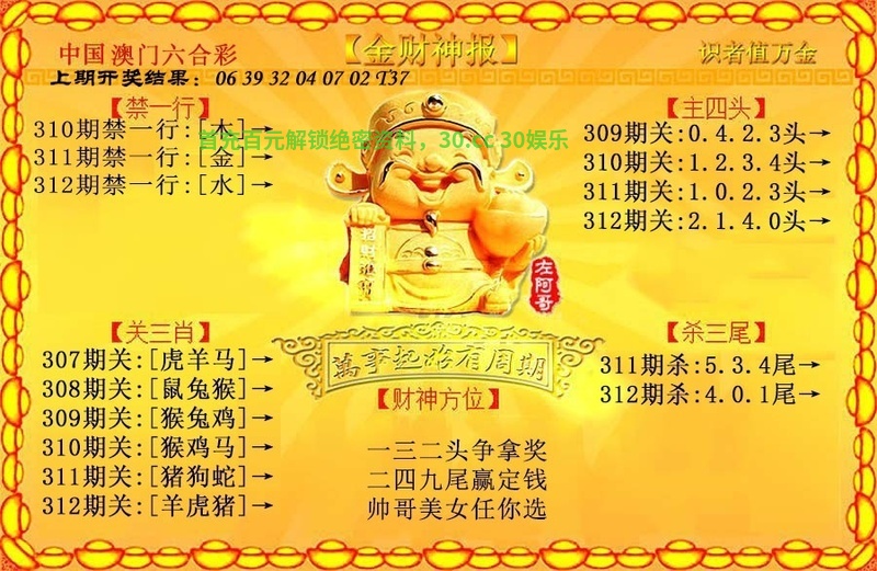 311期:☀吉凶中特☀【吉美】开:蛇37中